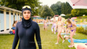 Dort badet Frau oben ohne, im Bikini, Badeanzug oder Burkini. Jede folgt dabei anderen Regeln. Das führt immer wieder zu Reibereien, die die überforderte Bademeisterin nicht so ganz im Griff hat. Als dann auch noch eine Gruppe komplett verhüllter Frauen das Frauenbad begeistert für sich entdeckt, fliegen buchstäblich die Fetzen: Wem gehört das Bad und wer bestimmt die Regeln? Wem gehört der weibliche Körper? Und wann ist denn überhaupt eine Frau eine Frau? Die Bademeisterin kündigt entnervt. Als dann aber als Nachfolge ausgerechnet ein Mann als Bademeister angestellt wird, eskaliert die Situation in unvorhersehbare Richtungen.
